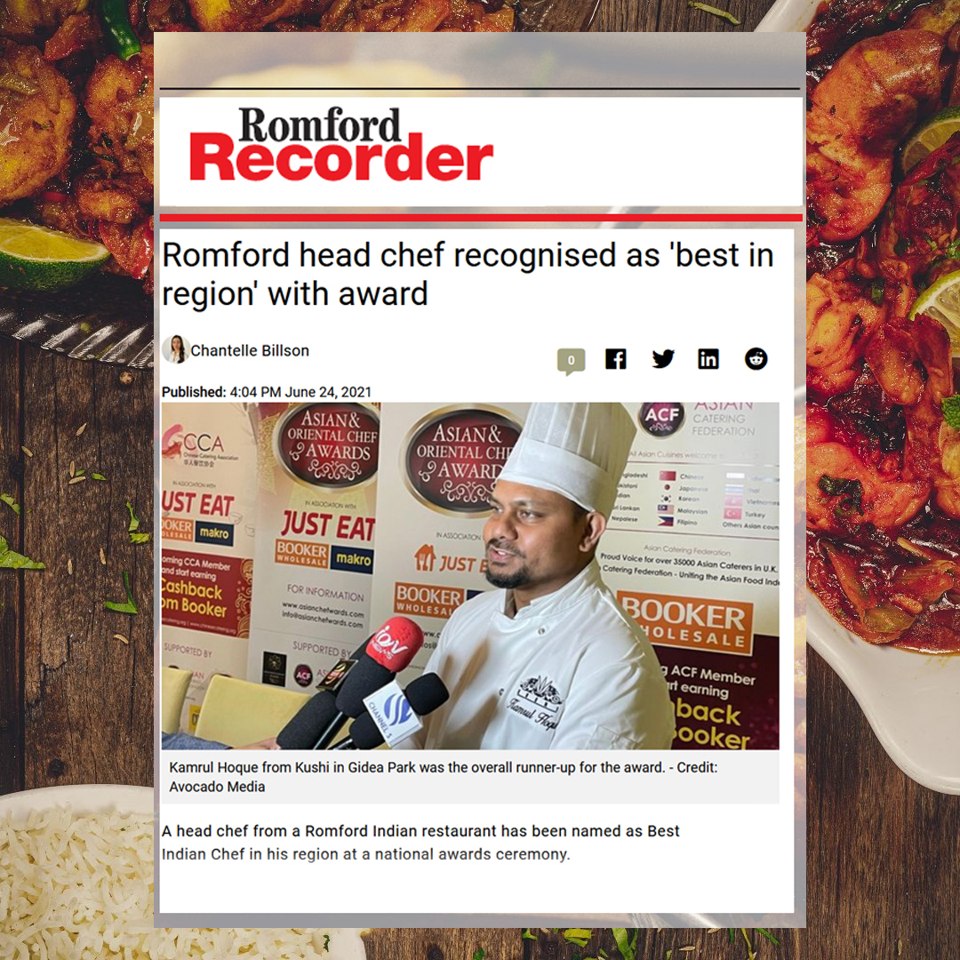 Kushi Restaurants would like to heartily congratulate our Award winning 🏅 chefs HUMAYUN RASHID from Kushi, Grays, for being Essex Regional Winner & KAMRUL HOQUE from Kushi, Romford, for being a National Runner Up and London Regional Winner at Asian & Oriental Chef Awards.