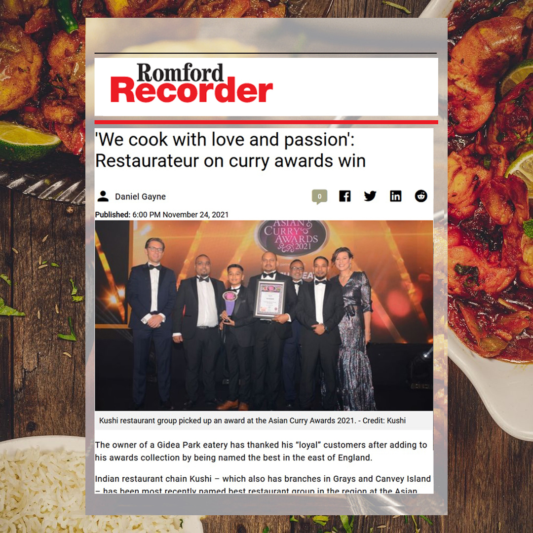 “BEST GROUP RESTAURANTS IN ESSEX” 2021 Asian Restaurant Awards. Top Honour. Proud moment for Kushi Restaurants, at 2021 Asian Restaurant Awards.