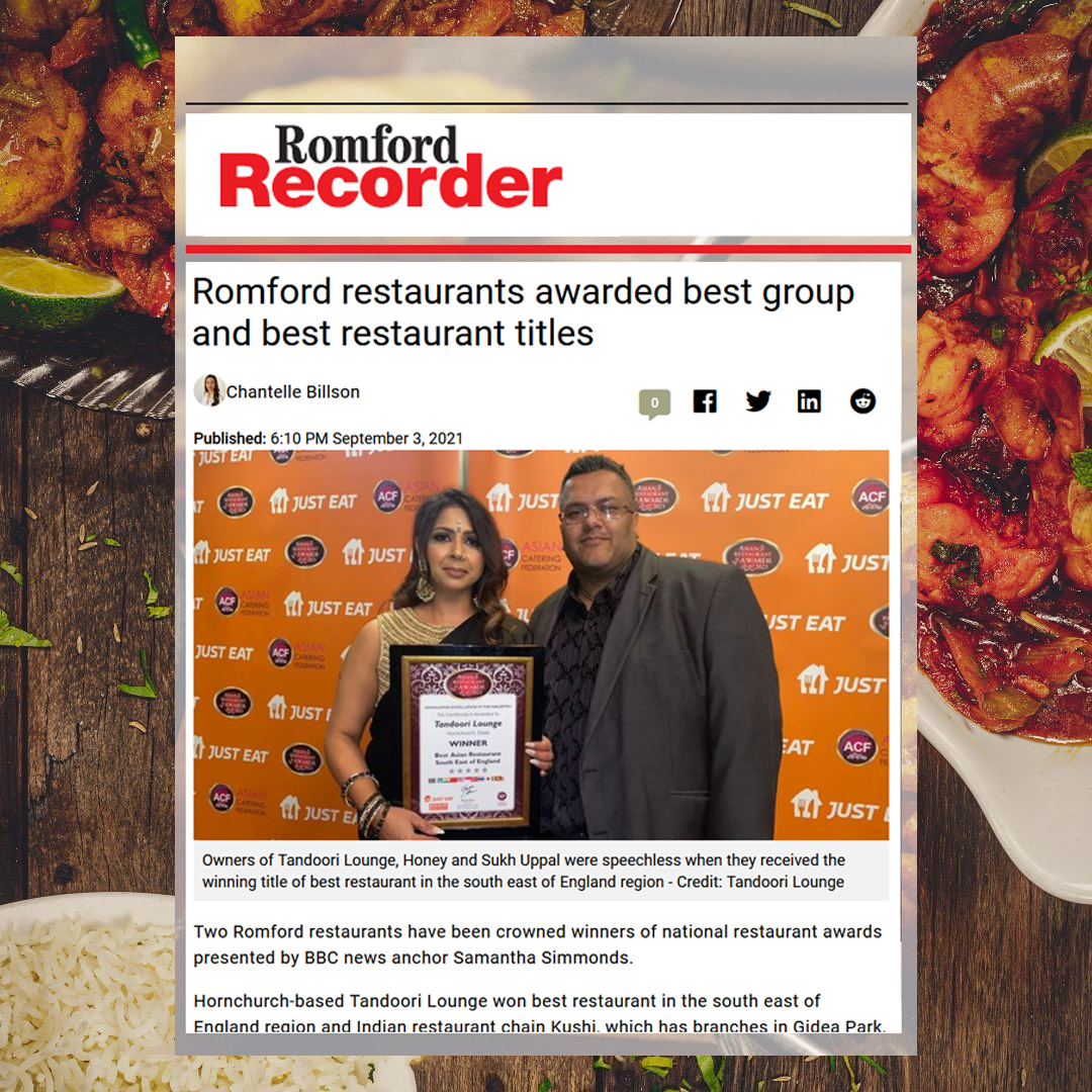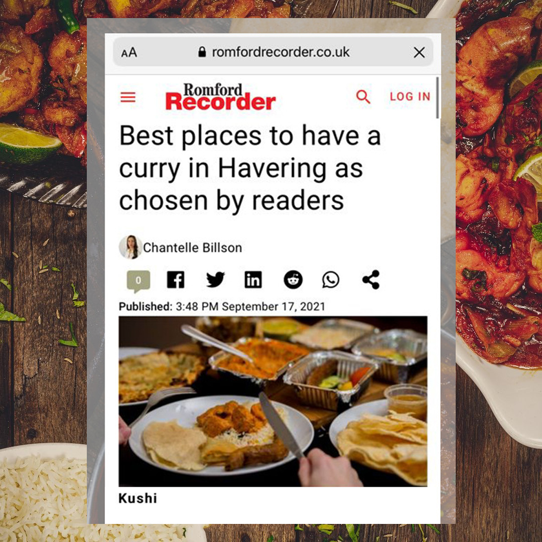 “No. 1 spot for curry in Romford” ~ Romford recorder